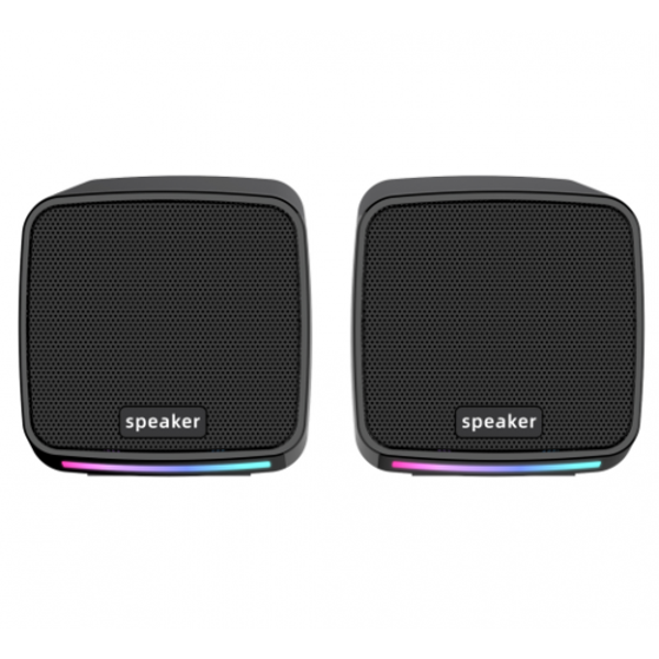 Mini enceintes stéréo 2.0 canaux au design moderne et aux excellentes performances sonores, avec une puissance totale de 6 W. Se connectent par câble aux appareils équipés d'une prise jack 3,5 mm classique. Elles sont alimentées par câble USB. De plus, elles disposent d'un éclairage LED RVB qui s'adapte au rythme de votre musique et crée un effet visuel impressionnant.