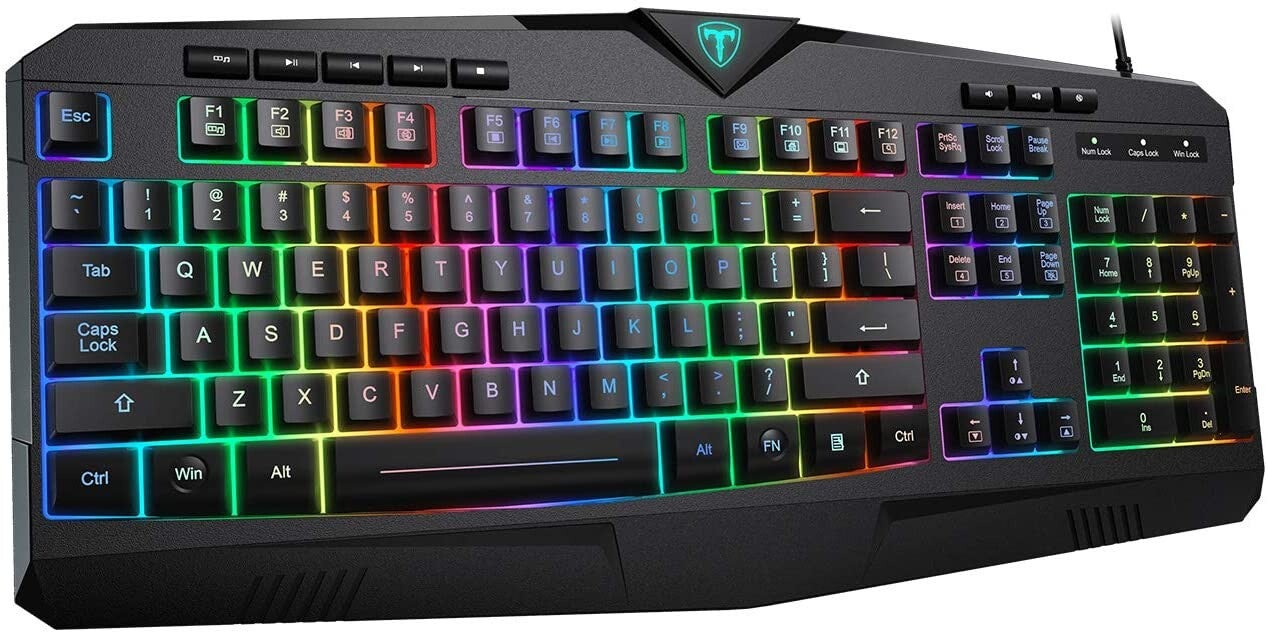 PICTEK Clavier de jeu, clavier filaire USB, rétroéclairage LED RVB, clavier d'ordinateur avec 8 touches multimédia indépendantes et 25 touches anti-ghosting, Plug & Play pour PC/Mac, ordinateur portable, jeu, etc.